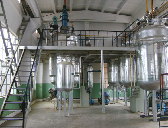 工藝說明:毛油攪拌預(yù)熱**一定溫度,根據(jù)油的品質(zhì)加入適當(dāng)?shù)臐饬姿釘嚢璺磻?yīng),使油中的膠雜生成油腳,再分離出油腳,然后往油中加入熱鹽水進(jìn)行洗滌,然后靜置分離出洗皂水,然后再經(jīng)過一、二次的同樣的洗滌就進(jìn)入干燥工序,將脫膠油水份降**0.5%以下。干燥以后的油脂加入磷酸在葉片過濾機(jī)中利用廢白土進(jìn)行干法脫膠,將含磷量降**10mg/kg以下,再進(jìn)入脫色塔采用活性白土和活性炭配比脫色,根據(jù)油品的顏色,必要時(shí)需要進(jìn)行復(fù)脫。脫色油接著泵入析氣器,在真空狀態(tài)下進(jìn)行除氧,然后進(jìn)入油—油換熱器與脫臭油進(jìn)行熱交換,備加熱**180℃的油再進(jìn)入加熱器,被加熱到250℃左右時(shí)進(jìn)入組合式脫酸脫臭塔上部的填料塔進(jìn)行脫酸,再流入下部的板式塔進(jìn)行延時(shí)脫色,從組合脫酸脫臭塔出來的脫酸油加熱后進(jìn)入脫臭塔脫臭,油在結(jié)構(gòu)填料表面形成薄膜從上往下流動(dòng),汽提蒸汽在塔內(nèi)自下而上與成薄膜狀的油接觸,進(jìn)行傳質(zhì)傳熱。由于填料具有很大的比表面積,汽液接觸充分,油中的游離脂肪酸和臭味物質(zhì)能**大限度地除去。脫酸脫臭操作在真空下進(jìn)行,脂肪酸混合蒸汽從塔頂排出,進(jìn)入脂肪酸捕集器捕集,不凝氣體由真空泵抽出,捕集得到的脂肪酸經(jīng)冷卻后進(jìn)入脂肪酸儲(chǔ)罐。從脫臭塔出來經(jīng)過換熱冷卻以后得到的脫臭油泵入脫蠟結(jié)晶罐,利用盤管冷凍液的循環(huán),使其按一定冷卻速度冷卻到脫蠟結(jié)晶溫度,經(jīng)過一定時(shí)間的養(yǎng)晶再泵入過濾機(jī)進(jìn)行固液分離,得到脫蠟油。脫蠟油再泵入脫脂結(jié)晶罐,冷卻**脫脂結(jié)晶溫度,經(jīng)過一定時(shí)間的養(yǎng)晶再泵入過濾機(jī)進(jìn)行固液分離,得到成品油。