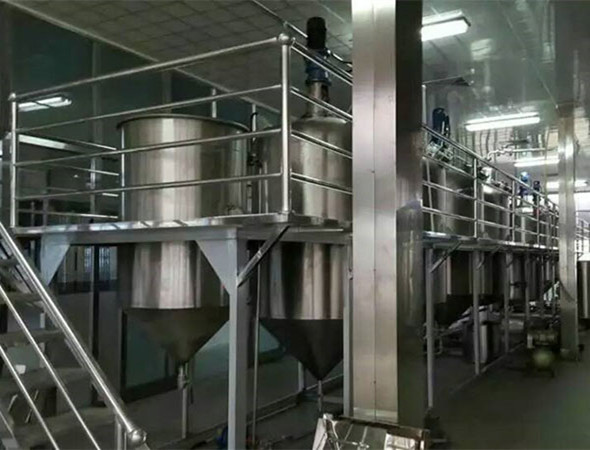 其次,壓榨后的毛油通過脫磷罐、脫酸罐、脫色罐、脫臭罐、皂角罐這五個罐,另外有堿液箱和白土罐來脫酸和脫色,是通過結(jié)晶罐、養(yǎng)晶罐、緩沖罐制冷機組板框壓濾機來進行冬化。