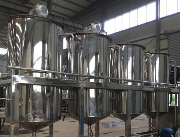 主要設(shè)備:離心機(jī)(或煉油鍋)、脫色塔(或脫色鍋)、葉片過(guò)濾機(jī)、布袋過(guò)濾器、組合式脫酸脫臭塔、螺旋板換熱器等。